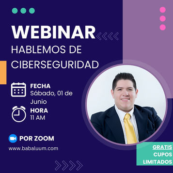 - sáb, 01 junhttps://us06web.zoom.us/meeting/register/tZBabaluum se complace en invitarte a nuestro próximo webinar "Hablemos de Ciberseguridad", diseñado para estudiantes y profesionales interesados en iniciar o cambiar de carrera en el campo de la ciberseguridad. Únete a nosotros y a nuestro experto invitado, Josué Ortega, para una sesión informativa.